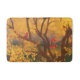 In einem lebhaften, gelben Ahorn sitzt ein männlicher Kardinal und behalte auf dem nahegelegenen Vogelfeeder über seinen Partner.