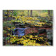 Hellgelber Herbst Blätter decken den Boden neben einem schnell fließenden Bach im Wald.