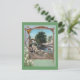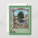 Ein Schäfer und sein Hund züchten eine Herde Schafe und Lämmer auf einem schmutzigen Pfad vorbei an einem See, der eine Kuh darin hat. Die Vignette wird von nackten Holzzweigen und weißen Tulpen gerahmt. Eine Glocke klingelt in dieser Viktorianischen Scrapbuchkarte aus dem späten 19. Jahrhundert.