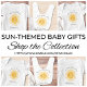 Dieser bezaubernde Baby-Bodysuit zeigt eine gelbe lächelnde Sonne und den Ausdruck "Here Comes The Son" in stilvoller Skript-Typografie. Er ist leicht anpassbar. Original-Wasserfarbe © Michele Davies.