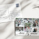 Ein elegantes Foto für Hochzeiten danke Postkarte, die für sechs Ihrer Lieblings-Hochzeitsfeiern in einem Collage-Layout entworfen wurde. "Mr. & Mrs." erscheint am unteren Rand in der Schriftzeichen-Schrift, mit Ihrer benutzerdefinierten Botschaft (mit "unserem Dank" gezeigt) und Namen unten. Postkarten kehren zurück, um Ihre Rücksendeadresse mit ausreichend Platz für die Adressierung des Empfängers sowie einer optionalen, vorgedruckten Nachricht anzuzeigen. Wenn Sie eine handgeschriebene Nachricht hinzufügen möchten, löschen Sie einfach den Beispieltext.