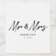 Eine einfache minimalistisch weiße Hintergrund und schwarzer Skripttext "Mr & Mrs." Hochzeitsweinetiketten, die an Ihren Nachnamen und Ihren Hochzeitsdatum angepasst werden können. Passen Sie den Text an und machen Sie ihn zu Ihrem eigenen. Ideal für Hochzeitsfeiern, für eine elegante, moderne Hochzeitsfeier.