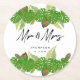 Herr & Mrs. Tropical Blätter Script Wedding Runder Pappuntersetzer