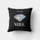 Ein elegantes Schwarz-Weiß-Hochzeitsdesign, das perfekt für Neuvermählte geeignet ist. Das Kissen ist in Schwarz-Weiß gestaltet, mit einer stilvollen Krawatte aus schwarzem Bug für den "Mr." und einem wunderschönen glänzenden Diamanten für die "Mrs." Das feststehende Datum befindet sich oben, kann auf Ihren Hochzeitstag oder ein unvergessliches Datum in Ihrem Leben angepasst werden. Für die Namen der Braut und des Bräutigams, die sich unten befinden, wird ein eleganter Script-Schriftart verwendet. Passen Sie den Text an und machen Sie ihn zu Ihrem eigenen.