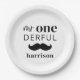Mit dieser modernen, monochromen Serviette kreieren Sie eine schöne Dekoration für die erste Geburtstagsparty Ihres kleinen Jungen. Es zeichnet sich durch moderne Typografie und ein Schnurrbart-Design aus, unter dem Sie Ihren Namen auswählen können.