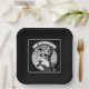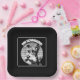 Schwarz-Weiß-Porträt eines kleinen Schnauzers mit Gläsern auf einem Sonnenuntergang im Vintagen Stil. Das perfekte Geschenk für Schnauzer-Liebhaber.
