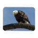 Ein sternenförmiger Glatzadler steht auf einem Baumarm unter einem strahlend blauen Himmel.