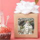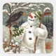Dieses wunderschöne deutsche Postkartenbild illustriert eine Krähe, die einem Schneemann einen Besuch abstattete, der von der Winterlandschaft umgeben ist. Die Einfachheit und die Farben ergeben ein wunderschönes Bild. Es ist perfekt für alle Ihre Weihnachts- und Urlaubswünsche.