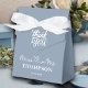 Machen Sie Ihre Gastgeschenke Hochzeiten mit Mr. und Mrs. Elegant Simple besonders. | Dusty Blue Gevor Box. Diese elegante Gunst-Box ist personalisiert mit Ihrem Familiennamen und dem Hochzeitstag für einen persönlichen Sake, den Ihre Gäste schätzen werden.