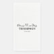 Genießen Sie die Pracht unserer Mr. und Mrs. Elegant Simple White Paper Handtücher, die sorgfältig darauf ausgelegt sind, eine Atmosphäre von Luxus und Ausgeglichenheit auszustrahlen. Diese Servietten sind mit Ihrem Familiennamen und Ihrem Hochzeitstag personalisiert und vereinen den Geist der Exklusivität und der Feier.