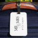 Modern Mr. und Mrs. Luggage Tag. Personalisieren Sie sich mit Ihrem Namen. Hervorragend für Hochzeiten, Neuaufnahmen, Flitterwochen, Jahrestage, Reisen. Wir laden Sie ein, unseren Zazzle's Store, Simon & Grace, zu besuchen, um passende Produkte und mehr zu sehen. Bitte kontaktieren Sie uns, wenn Sie Hilfe benötigen.