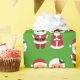 Herr und Frau Santa Clause über einen grünen Hinte Geschenkpapier