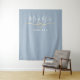 Eleganter, moderner, minimalistisch staubblauer Hintergrund Mr. und Mrs. Hochzeit mit goldenem Seil Herz.