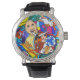 Uhr, Vintage Männeruhr mit schwarzem Lederarmband