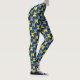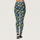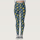 Diese Leggings haben ein modernes Design von Ovalen in der Marine mit Halbkreisen in Gelb- und Grautönen auf einem schwarzen Feld.