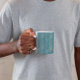 Herringbone Zickzack Muster Türkis Kaffee Tasse. Elegante, stilvolle und raffinierte Aquarellmalerei gezeichnet Zickzack (Zickzack) Muster in türkisfarbener Farbe. Genießen Sie Ihren morgendlichen Kaffee mit diesem schönen Herringbone-Muster.
