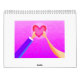Romantischer Liebeherz-Kalenderentwurf. Jede Seite enthält eine andere Herzillustration.