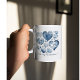 Herz in Delft Blue Farben, schöne Valentinkarte in Delft Blue