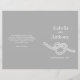 Einfache Kontur zeichnend in Weiß und Grau eines Herz-förmigen Knoten Hochzeitsprogramm. Modernes, schlichtes Hochzeitsdesign im modernen Stil, Teil des Liebe knot Hochzeitsfest Set. Bearbeiten Sie dieses Hochzeitsprogramm mit Ihrem eigenen Namen, Terminen, Zeremoniell, Begleitern von Hochzeitsfeiern und vielen Dank. Einfaches und dennoch elegantes Programm ersetzt einfach den Sample-Text durch Ihre Hochzeitsinformationen und faltet die Programme bei Lieferung in der Mitte. Ein perfektes Hochzeitsprogramm für eine einfache, moderne Hochzeit, um Ihnen Ihre Einheit und Ihr Miteinander zu zeigen. Einzigartiges zeichn und Design von Sarah Trett.