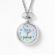 Eine Armbanduhr mit einem skurrilen zeichn des Eiffelturms im Hintergrund, umgeben von grünen Bäumen. Ein rosa Herz und eine Pariser Typografie fügen einen gürnischen Flair hinzu.