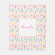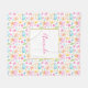 Eine Decke mit einem köstlichen und skurrilen Muster. Herz, Liebe Briefe, Muffins, Tulpen und Kirschen bringen Freude und Glück in dieses niedliche kleine Muster. Hübsche Pastellfarben. Ein weißes Quadrat mit einem goldenen Imitat-Folienabrand, der oben mit dem Text im Inneren platziert ist.