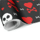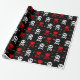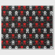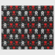 Nahtloses Muster eines weißen mit rotem Schädel und schwarzem Hintergrund mit Herz und Kreuz.