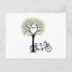 Herzbaum mit Vögeln und Tandemfahrrad Postkarte