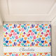 Schöner und süßer individuelle Name Doormat mit einem farbenfrohen Wasserfarbenherz Muster. Personalisierter Name der Tür mit einem zarten, nahtlosen Herz, romantisch, fröhlich und geschmackvoll.
