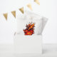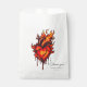 Herzflammen. Stilvolles Herz, in dem die Herzoberfläche geknackt ist und Spuren von Verletzungen und Kämpfen zeigt, was dem Gesamtbild eine dramatische Tiefe verleiht. Flammen scheinen das Herz zu umhüllen, was den Eindruck von Energie und Vitalität verstärkt. Die Kombination aus realistischem Herz, dynamischen Flammen und blutigem Tropfen schafft eine kraftvolle visuelle Metapher für Liebe, Schmerz und Leidenschaft.