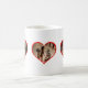 Tasse der Fotografie mit einem einfachen roten Herz, Fotos von Familienmitgliedern, Kindern, Eltern, Ehegatten oder jedem, der in deinem Herzen lebt. Es gibt Platz für drei verschiedene Fotos.