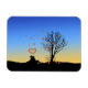 Romantische Herbstillustrierung mit einer Silhouette eines Pärchens, das im Gras neben einem Baum unter herzförmigen Blätter sitzt.