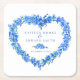Blau vergisst-ich-nicht Herzkranz Tinte zeichnend blau-weiß Hochzeit Untersetzer. Fügen Sie Ihren eigenen Paarnamen und das Hochzeitsdatum in blau auf knusprig weiß hinzu. Andere passende Hochzeitsartikel sind erhältlich. © Original Tinte zeichn und Aquarell Blume Vergiss-me-not und Design von www.mylittleedenweddings.com auf Zazzle.