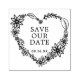 Hübscher Herzkranz mit "rett unser Datum" in klassischer Serife und dem Datum in moderner san-Serifentypografie. Große Briefmarke für Hochzeiten oder jeden besondere Anlass.