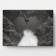 Schwarz-Weiß-Foto eines herzförmigen Pools mit Blick auf den Wasserfall.