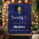 Ein Begrüßungspposter für eine 70. Geburtstagsfeier. Ein marineblau, uneinheitlich farbiger Hintergrund. Personalisieren und fügen Sie einen Namen und ein Foto hinzu. Herzförmige Fotos. .