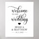 Einfach elegant WILLKOMMEN ZU UNSEREM WEDDING-Design auf weißem Hintergrund und schwarzen Schrift topography Buchstaben mit kleinem Herz. Ideal für jedes Thema, Stil oder Jahreszeit.
