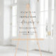Moderne Hochzeitsrezeption mit einem klaren Acrylzeichen mit dem Titel "Welcome To Our Happily Ever After Party" in einem Mix aus einfacher Typografie und einem eleganten Drehbuch mit Swashes: "Wir sind so froh, dass du hier bist", verbinden deine Vornamen mit Herz und Empfang. Ideal für Empfänge nach einer Veranstaltung oder einer kleinen privaten Hochzeit.