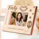 Feiern Sie einen unvergesslichen 40. Geburtstag mit diesem personalisierten Holzrahmen "Cheers to 40 Years". Mit festlichen Gravuren von Sternen, einem Ballon mit "40" und einem fröhlichen Geburtstagsbanner ist dieser Rahmen ein gedankenvoller Pfeiler, um einen besonderen Meilenstein zu markieren. Es ist mit einem Namen und einer Botschaft versehen und ist die perfekte Möglichkeit, die Erinnerungen dieses bedeutenden Tages zu präsentieren. Dieses einzigartige Bild eignet sich ideal für ein 40. Geburtstagsgeschenk und verleiht jedem Geburtstagsfest eine charmante Touch.