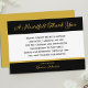 Dieses Beileid Dankeschön-Karte zeigt eine sehr herzliche Botschaft in der Mitte. Die Worte "Ein herzliches Dankeschön" erscheinen oben in Gold auf schwarz. Der untere Teil ist in Gold und Schwarz gehalten, wo Sie den Namen Ihres Liebsten eingeben können. Dieses Design ist einfach und klassisch. Sympathythanka für das Urheberrecht