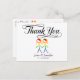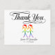 Diese Dankeschön-Karte zeichnet sich durch ein schönes und herzliches Design aus, um Ihre Wertschätzung für Ihre Hochzeitsgäste zu zeigen. Die Grafik zeigt zwei Frauen, in Form von eleganten Strichmännchen, die Händchen halten. Die Figuren sind in einem wunderschönen Regenbogen gefärbt und symbolisieren Liebe und Diversity. Diese Karte ist ein wunderbarer Weg, um allen, die Ihnen geholfen haben, Ihren besonderen Tag zu feiern, Dankbarkeit auszusprechen.
