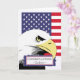 Herzlichen Glückwunsch Godson. Die Papiergrusskarte enthält einen Glatzenadler und die amerikanische Fahne. Modernes und kühnes Design für einen Glückwunsch zum Abschluss der Grundausbildung. Bild und Vers Copyright © Shoaff Ballanger Studios.