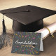 Feiern Sie die Errungenschaften Ihrer Lieben mit dieser stilvollen und minimalistischen Abschluss-Karte. Die Karte ist mit einem dunklen Hintergrund, der mit bunten Konfetti und Bändern geschmückt ist, perfekt für jeden Absolvent. Die fett gedruckte weiß-goldene Schrift und eine bezaubernde Graduierungsmütze-Illustration sorgen für eine Touch an Eleganz und Freude. Außerdem können Sie den Hintergrund auf eine Farbe Ihrer Wahl anpassen, was ihn zu einem wirklich einzigartigen Sake macht. Egal, ob es sich um eine High School, eine Uni oder einen anderen Abschluss handelt, diese Karte wird den Tag ganz besonders machen.