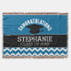 Ein lustiges Design zum Feiern des Absolventen. Fügen Sie einen Namen und Jahr, um eine persönliche Graduierungsparty Gunst oder memento machen. Klassisches Design mit Graduierdeckel und festem Hintergrund mit Zickzack Muster.