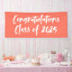 Modernes Abschluss-Banner mit "Gratulations Class of 2025" in einem weißen Pinselskript mit Korallenhintergrund oder Farbe Ihrer Wahl. Das Banner des Korallenbanners ist so konzipiert, dass es mit unserer Abstrakten Pinselstriche Abschluss Kollektion koordiniert wird.