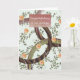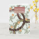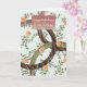 Künstlerische Gratulationskarte mit modernen abstrakt-braunen Ringen auf Reben und orangefarbene Blume. Ideal für viele Feiern. Ein Imitat Glitzer Korallenbox betont die Meldung.