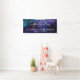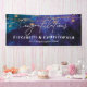 Elegantes und modern gestyltes Hochzeitsbanner Verlobung Glückwunschbanner für das neu verlobte Paar. Wünschen Sie Ihrem glücklichen Paar ein inspirierendes Zitat "Möge Ihre Liebe immer wachsen" oder eine andere persönliche Nachricht. Monogramm mit den Paarnamen, um Ihr eigenes Party-Banner zu erstellen. Ideal auch für Hochzeitsfeiern! Stilvolles Banner mit moderner Teelicht mit blauem Aquaunihintergrund und Sternen. Typografischer Stil gratulieren Text.
