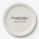 Einfache "Gratulation zu Ihrer Verlobung" Papier-Teller für die Verlobungsfeier. Schwarzer Text (anpassbar mit Zazzle's Design Tool) auf einem cremefarbenen (auch anpassbaren) Hintergrund. Personalisiert mit den Namen des neu verlobten Ehepaares.
