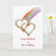 Diese sentimentale Grußkarte gratuliert einem schwulen oder lesbischen Paar zu ihrer Hochzeit mit einem farbenfrohen Airbrush-Bild eines Regenbogens, das in zwei ineinander greifenden Herzen endet. Der innere Vers lasse ihnen zu wissen, dass ihre Gewerkschaft die Welt zu einem schöneren Ort gemacht hat. *Andere Artikel mit diesem Bild finden Sie in meinem Shop.