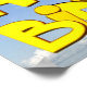 Herzlichen Glückwunsch zum Geburtstag. Gelbe Buchstaben, blaues Himmelsdesign.