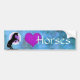 Blau/grün mit der schwarzen Silhouette eines Pferdes, einem lila/weißen Gradientenmond, einem Magentalherz und dem Wort "Pferde".